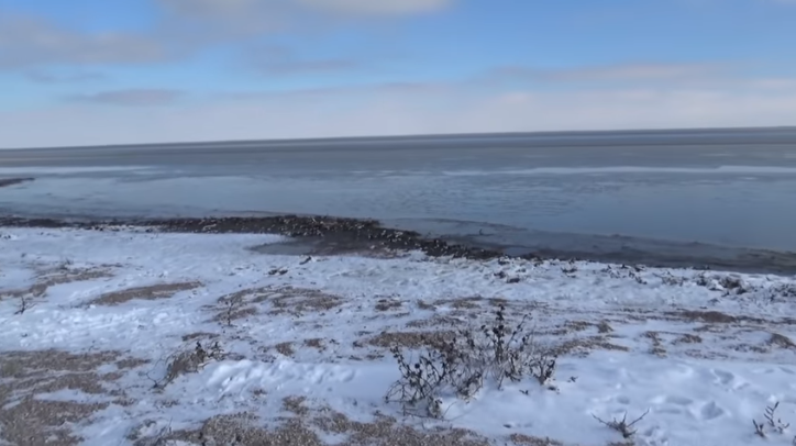 Житель Ефремовки Владимир Король снял видео на берегу Молочного лимана и показал, что до исторических берегов осталось всего каких-то пару метров.