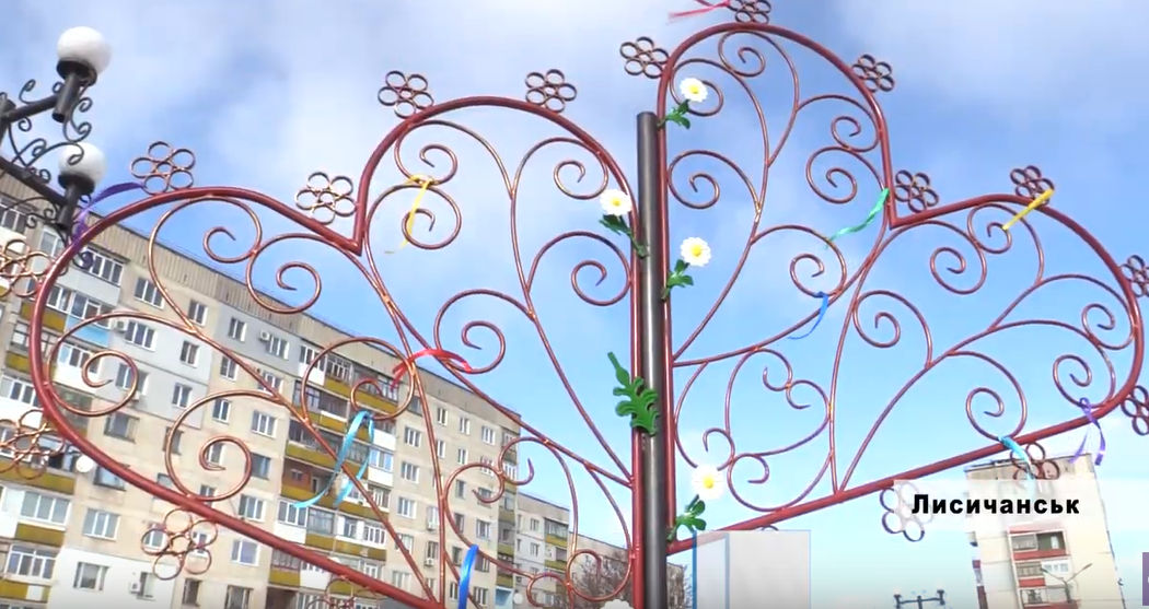 Металлическое дерево любви появилось в сквере имени 10-летия независимости Украины, что в районе РТИ. Идея установить такую конструкцию принадлежала администрации школ и молодым представителям местного ЖЕКа.