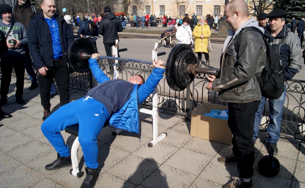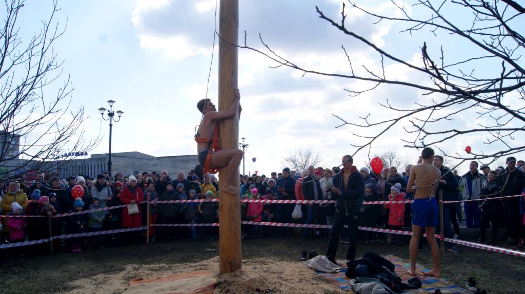 Лисичанские силачи соревновались в поднятии гири весом 32 кг, штанги - 110 кг, а самые ловкие - пытались залезть на «Призовой столб» высотой 8 метров и достать мешочек с номером подарка.