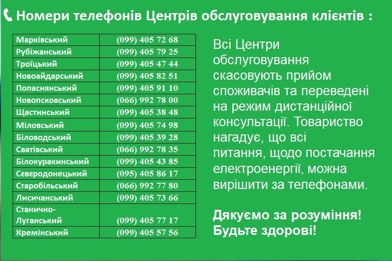 Все Центры обслуживания "Енера Схід" прекращают прием потребителей и переведены на режим дистанционной консультации. Все вопросы, касающиеся поставки электроэнергии, можно решить по телефону.