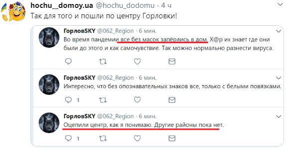 Местные же считают, что "карантин" - лишь повод в очередной раз покошмарить население. Тем более, что боевики вламываются в квартиры горловчан без масок.