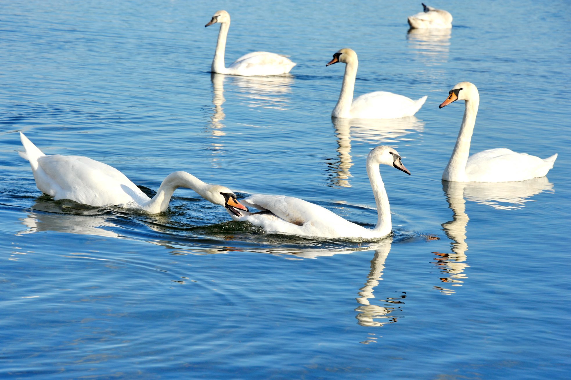 Природа преподносит сюрпризы жителям Северодонецка. В этом году на Чистом озере обосновались несколько пар белых лебедей, которые существенно преобразили водоем.