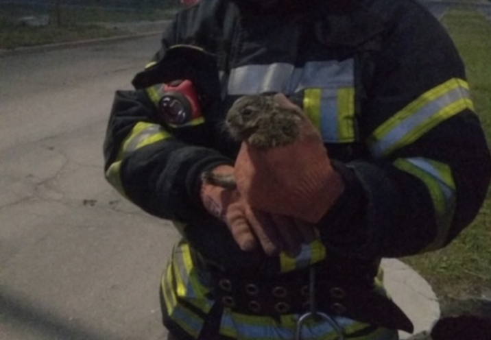 Бойцы Службы спасения с помощью шанцевого инструмента сняли решетку и извлекли зверька без повреждений.