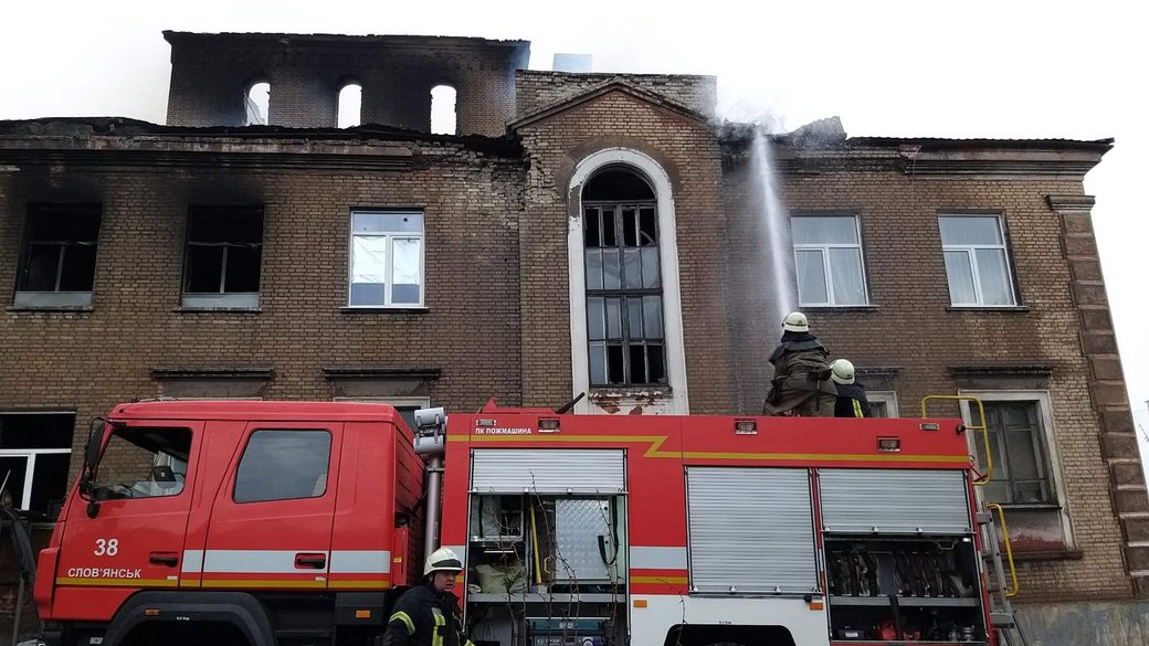 В Славянске (Донецкая область), 26 апреля произошел пожар в Центре культуры и окружающей среды (бывший Дворец культуры Железнодорожников). Огонь тушили около шести часов, убытки считают.