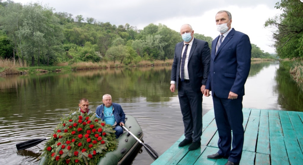 Следующим местом остановки стали мемориальный комплекс "Память" и мемориал "Танк", а завершился ряд торжественного возложения цветов спуском венка в воды реки Северский Донец.