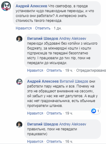 Кроме того, комментаторы пишут, что "инновационные" пешеходные переходы, которые были введены в эксплуатацию несколько месяцев назад, проработали всего две недели - до тех пор, пока их не передали горсовету.