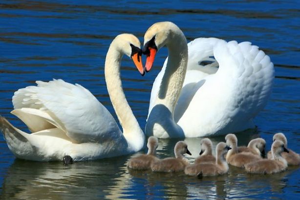 Жители Северодонецка сейчас могут полюбоваться трогательной картиной: пара лебедей, живущих на Чистом озере, воспитывает выводок птенцов.