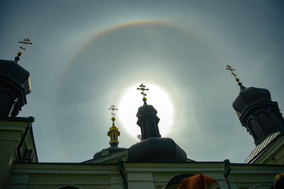 Так, гало засняли во время богослужения над Киево-Печерской лаврой, а также над Свято-Троицким Иоинским монастырем.