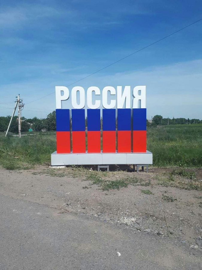 Въезжающих с подконтрольной территории Украины в оккупированные районы Донецкой области через КПВВ "Еленовка" теперь встречает стела "Россия".