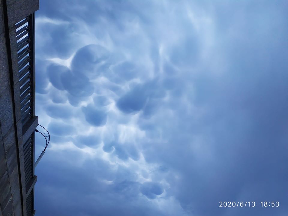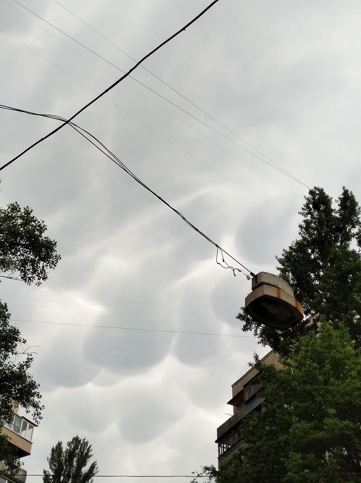 "Не думала, что увижу их в Киеве. Час назад, Днепровский район. Похоже, что это редкие для наших широт облака Mammatus (их ещё называют вымеобразными). Читала, что в США появление этих облаков раньше связывали с торнадо. Надеюсь, у нас просто грозовой фронт) Хотя природа любит сюрпризы, а климат в Украине очень изменился", - написала автор поста.