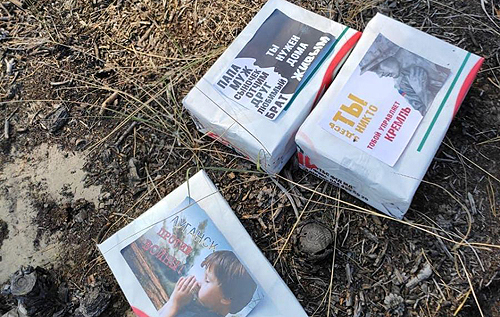 "Луганск против войны!", "Папа, муж, сыночек, отчим, друг, любимый, брат – ты нужен дома живым", "Здесь ты никто, тобой управляет Кремль" - гласят надписи на листовках.