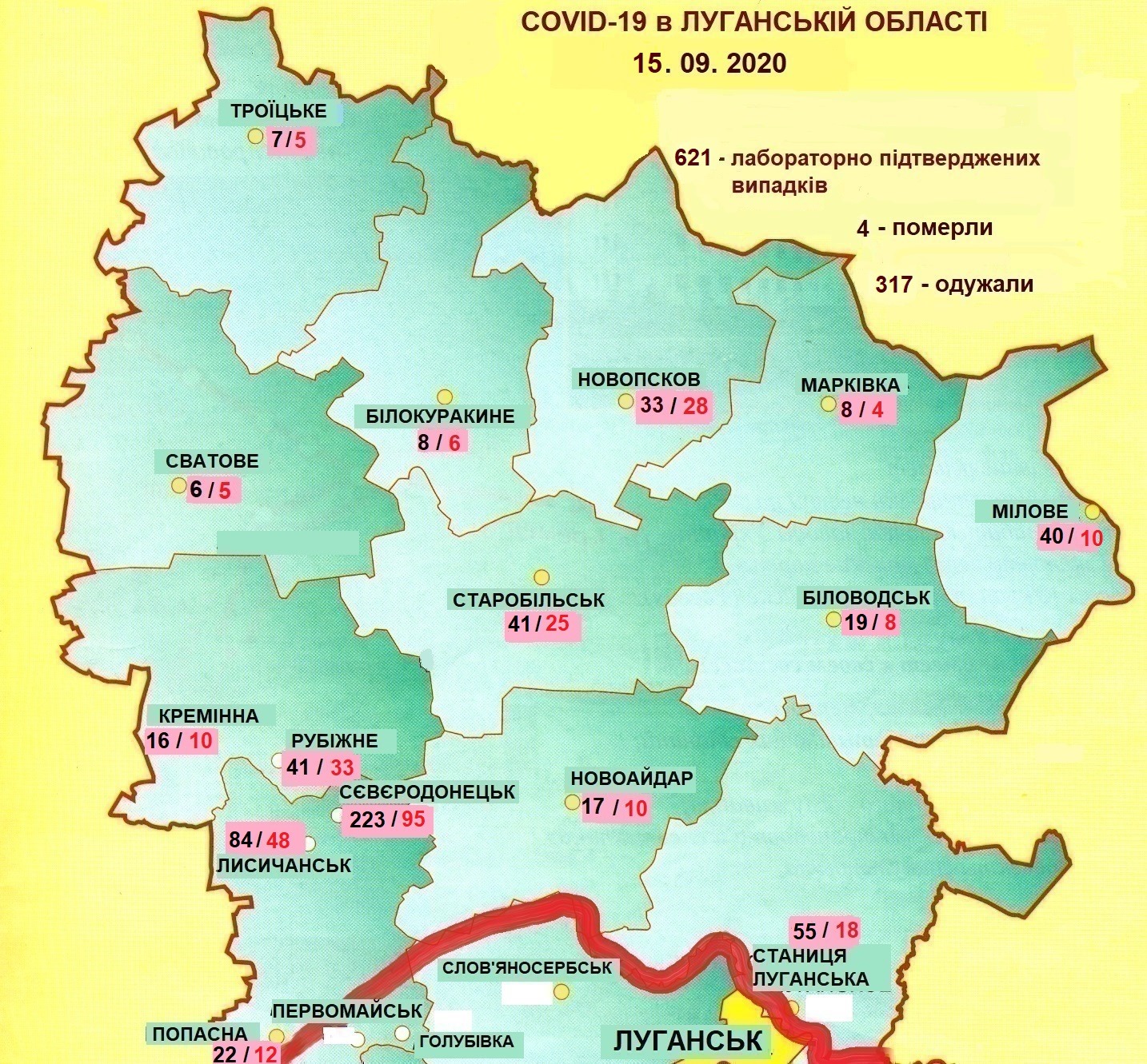- г. Северодонецк +11 (из них 6 - в контакте с зарегистрированными случаями заболевания, 2 - прибывшие с временно оккупированной территории, 3 - с клиническими проявлениями болезни);