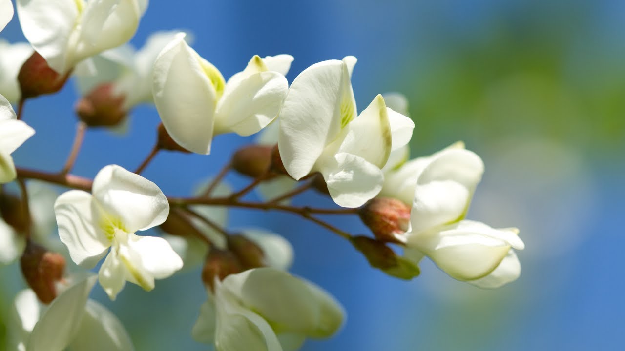 На фото заметно, что на цветущей акации уже практически нет зеленых листьев. Поэтому цветы выглядят не совсем органично.