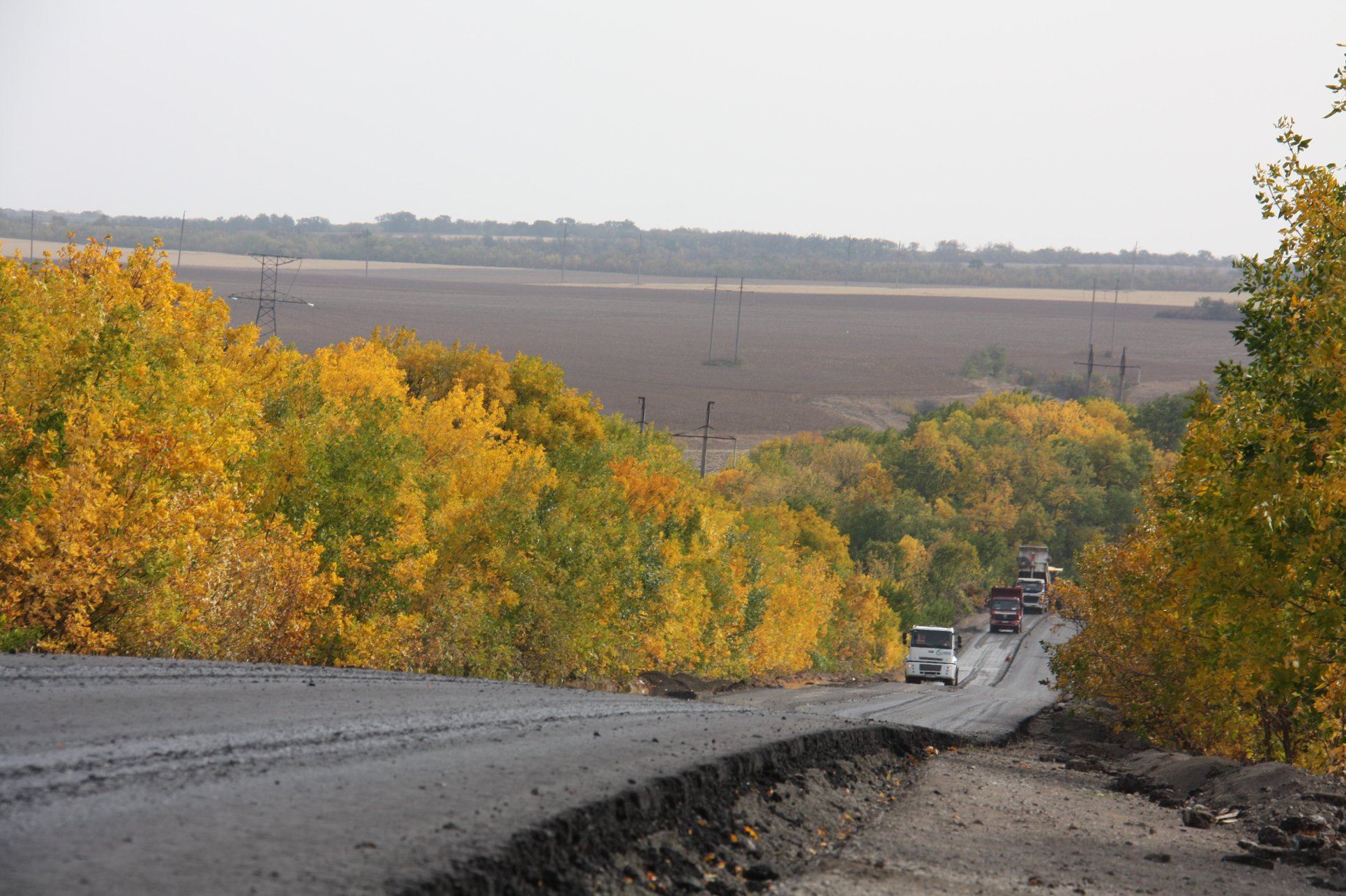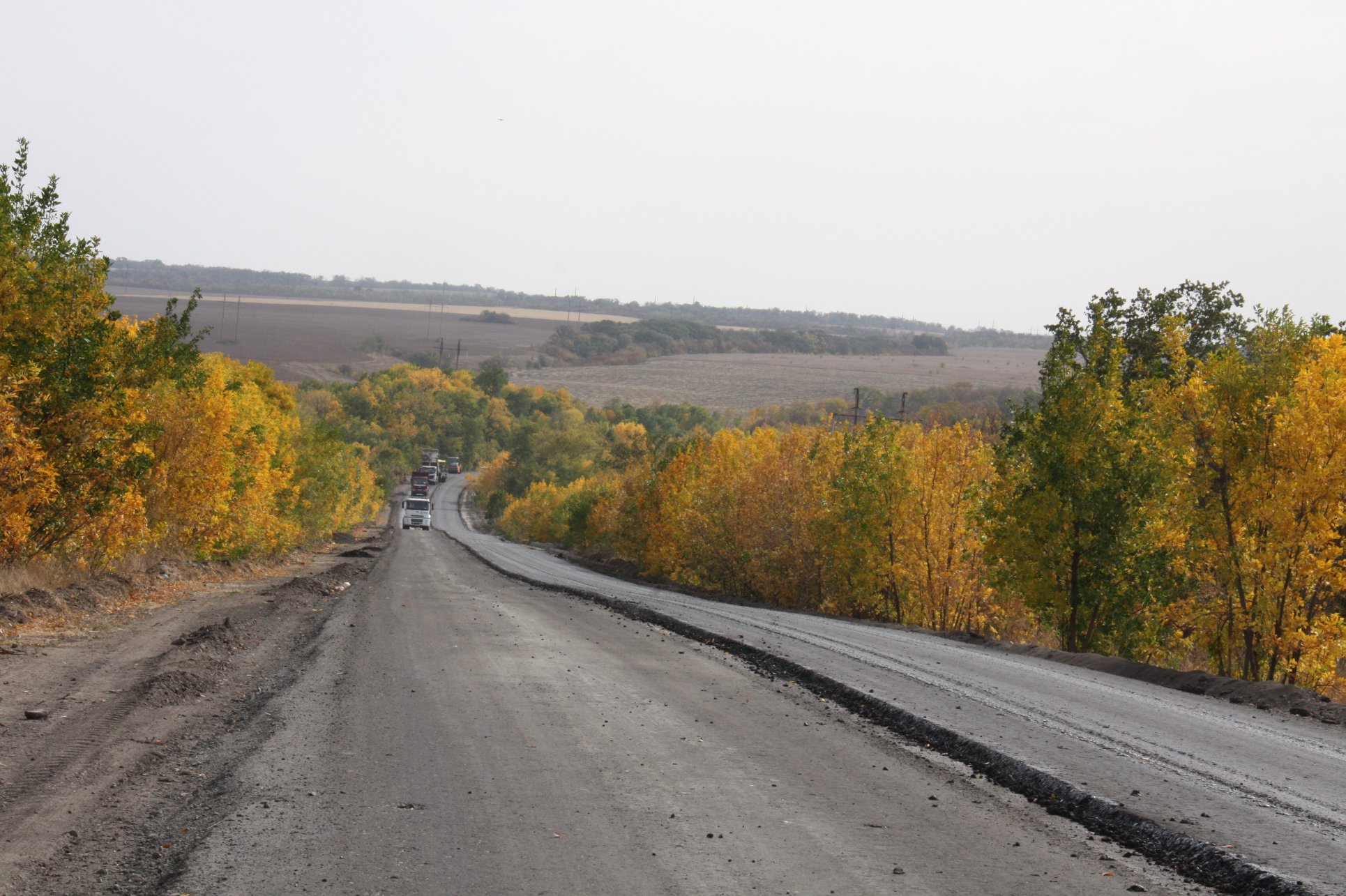 На участке км 178 + 800 - км 194 + 500 от населенного пункта Горское до блок-поста в Лисичанске сейчас укладывают нижний слой асфальта.