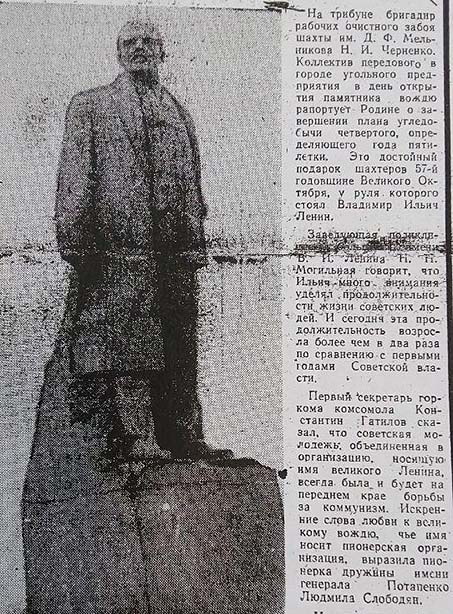 Статья в городской газете об открытии памятника В. И. Ленину в Лисичанске