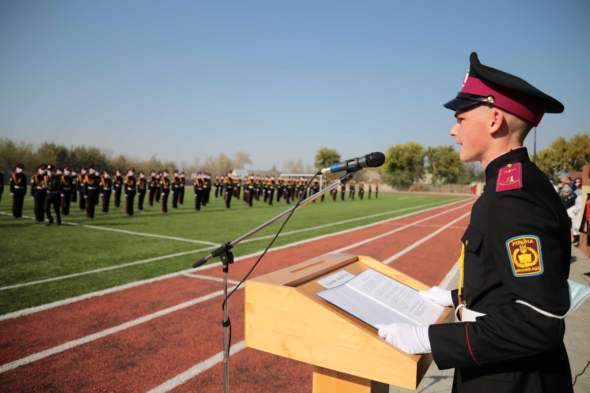 «Перед всем Украинским народом, перед своими родителями, всем самым святым и дорогим, святой землей Украинской пусть гордой птицей летит голос нашей торжественной клятвы» - такими словами начинается присяга кадетов Луганского областного лицея с усиленной военно-физической подготовкой «Кадетский корпус имени героев Молодой гвардии».