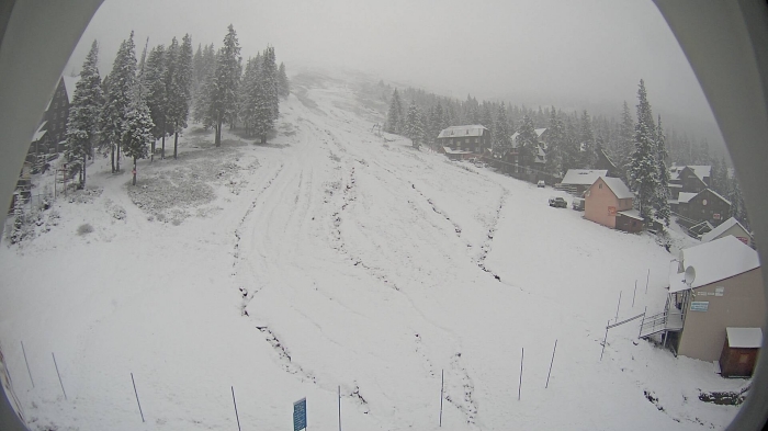 Сегодня, 31 октября, в Карпаты пришла настоящая зима. Снег, который шел не переставая все утро, преобразил горнолыжные курорты до неузнаваемости.