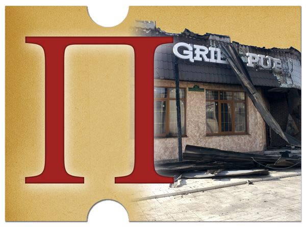В это же время в центре Лисичанска облили топливом и подожгли кафе GRILL PUB. Здание не успели потушить, так как пожарные машины были на вызовах – тушили лес и окрестные поселки.