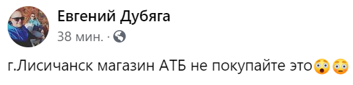 Житель Лисичанска Евгений рассказал в местном Фейсбук-сообществе о неудачной покупке в супермаркете "АТБ", передает Час Пик.