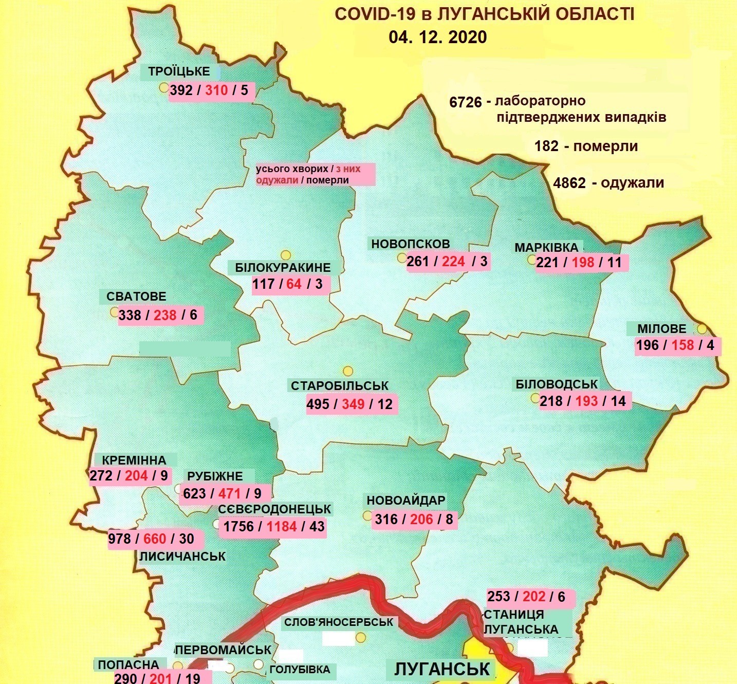 Всего с начала пандемии на Луганщине от этой болезни умерло 182 человека.