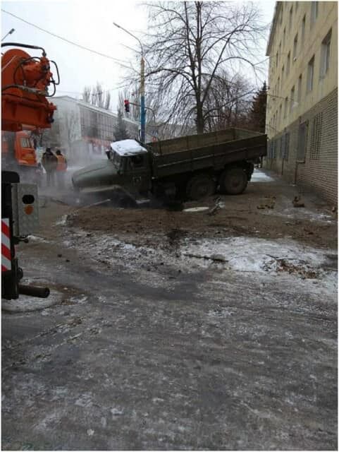 В Луганске, в квартале Юбилейном, военный грузовик "Урал" с оккупантами провалился в теплотрассу.