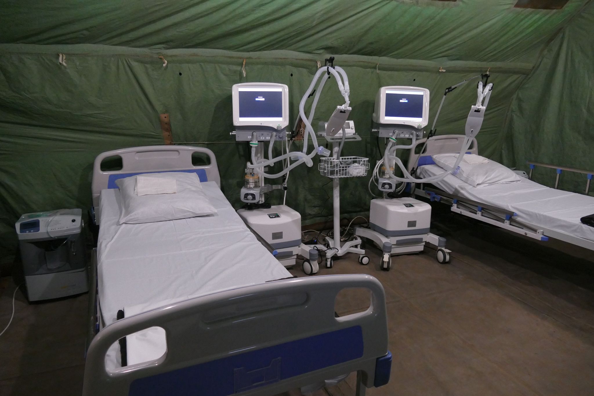 Госпиталь состоит из 30 палаток, из которых 24 - это госпитальная база и рассчитаны на 120 коек.