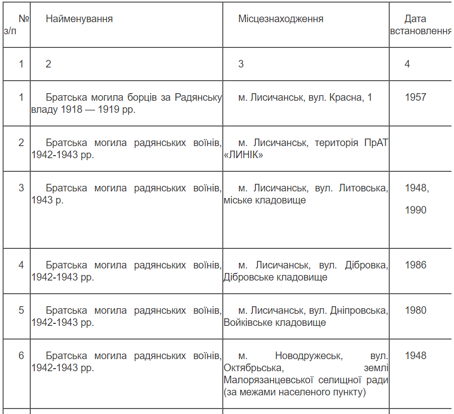 Два десятка братских могил и памятников, расположенных на территории городов Лисичанск, Новодружеск и Приволье, станут собственностью городской общины. Сейчас эти объекты определены как бесхозное имущество, и если их владельцы не объявятся, они будут признаны объектами права коммунальной собственности.