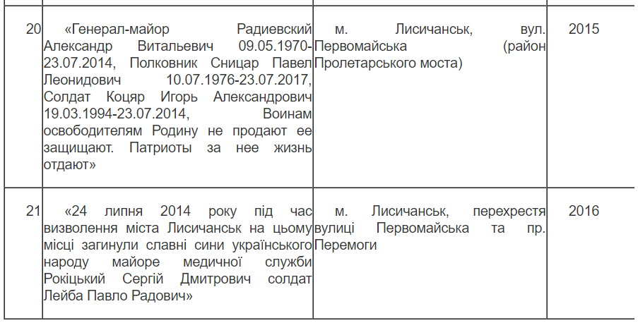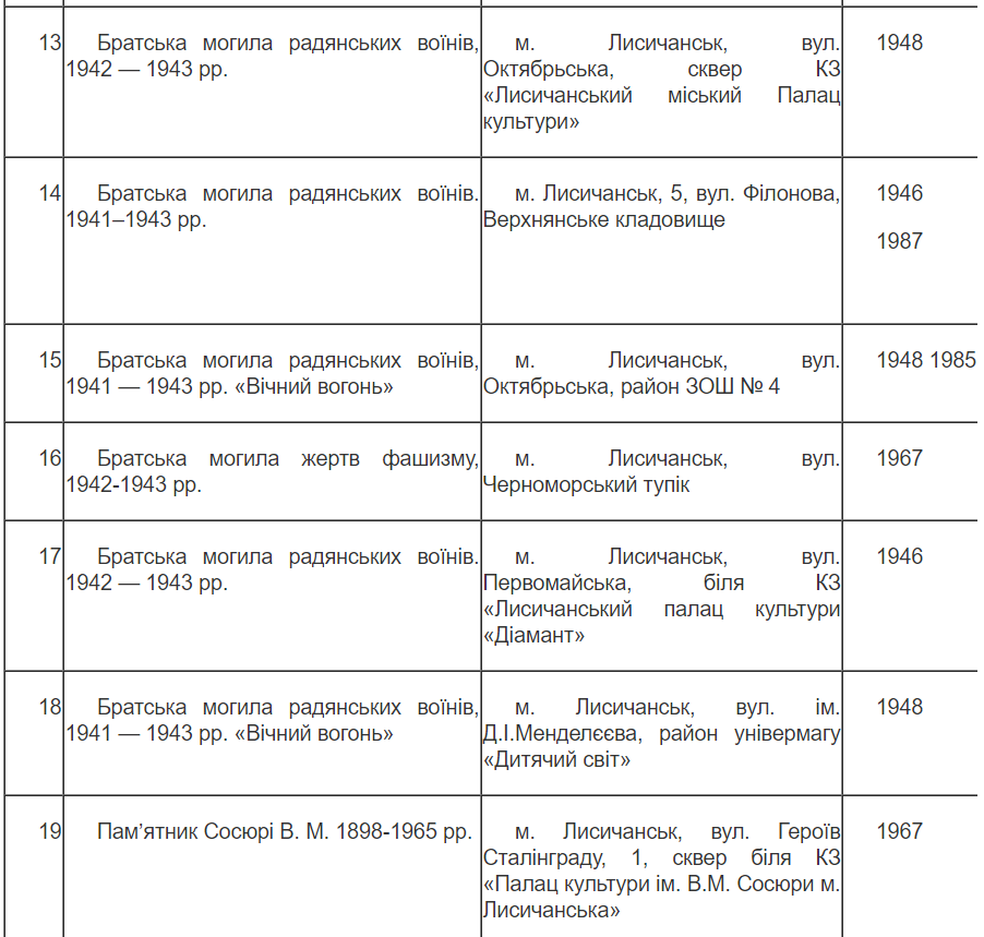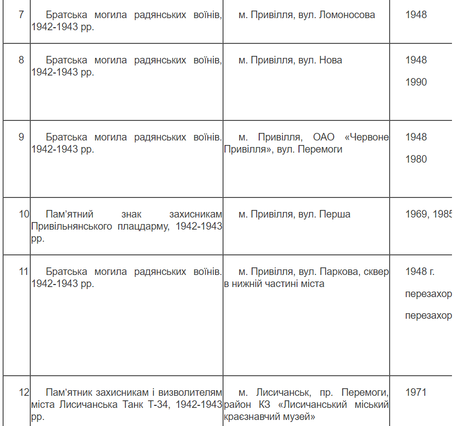 "При наличии информации о владельцах вышеупомянутых объектов, просим в срок до 21.06.2021 предоставить соответствующие правоустанавливающие документы в отдел культуры Лисичанской городской военно-гражданской администрации по адресу: ул. им. М. Грушевского, Лисичанск, Луганская область (каб. № 5), контактные телефоны (06451) 4-68-33, 7-34-08", - говорится в сообщении отдела культуры Лисичанской ВГА.
