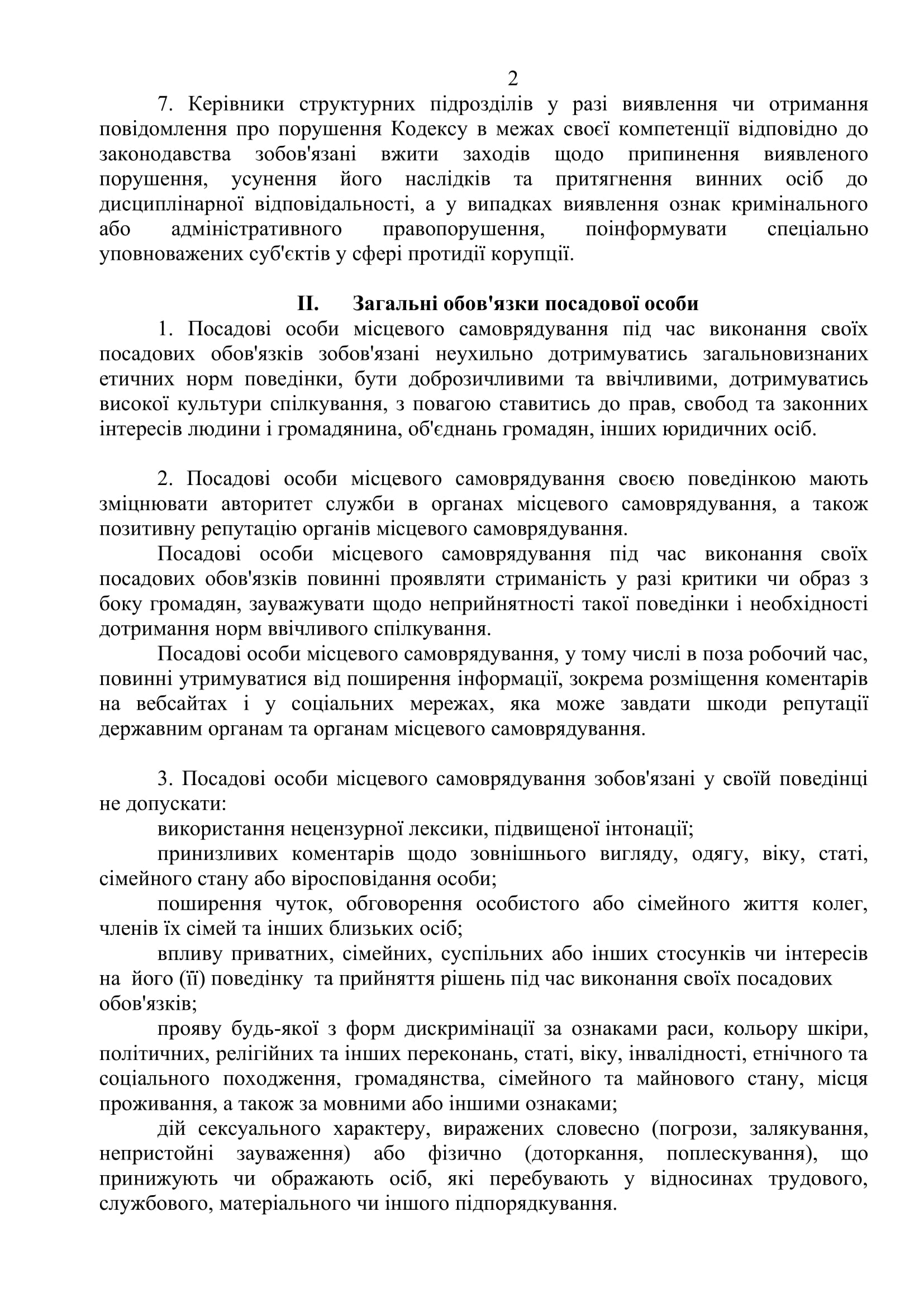 Также кодекс предусматривает соблюдение должностными лицами общепризнанных этических норм поведения, не допускается использование ими нецензурной лексики, повышенной интонации, унизительных комментариев, распространение слухов, обсуждение личной или семейной жизни коллег, проявление различных форм дискриминации, оскорбительных действий сексуального характера и др.