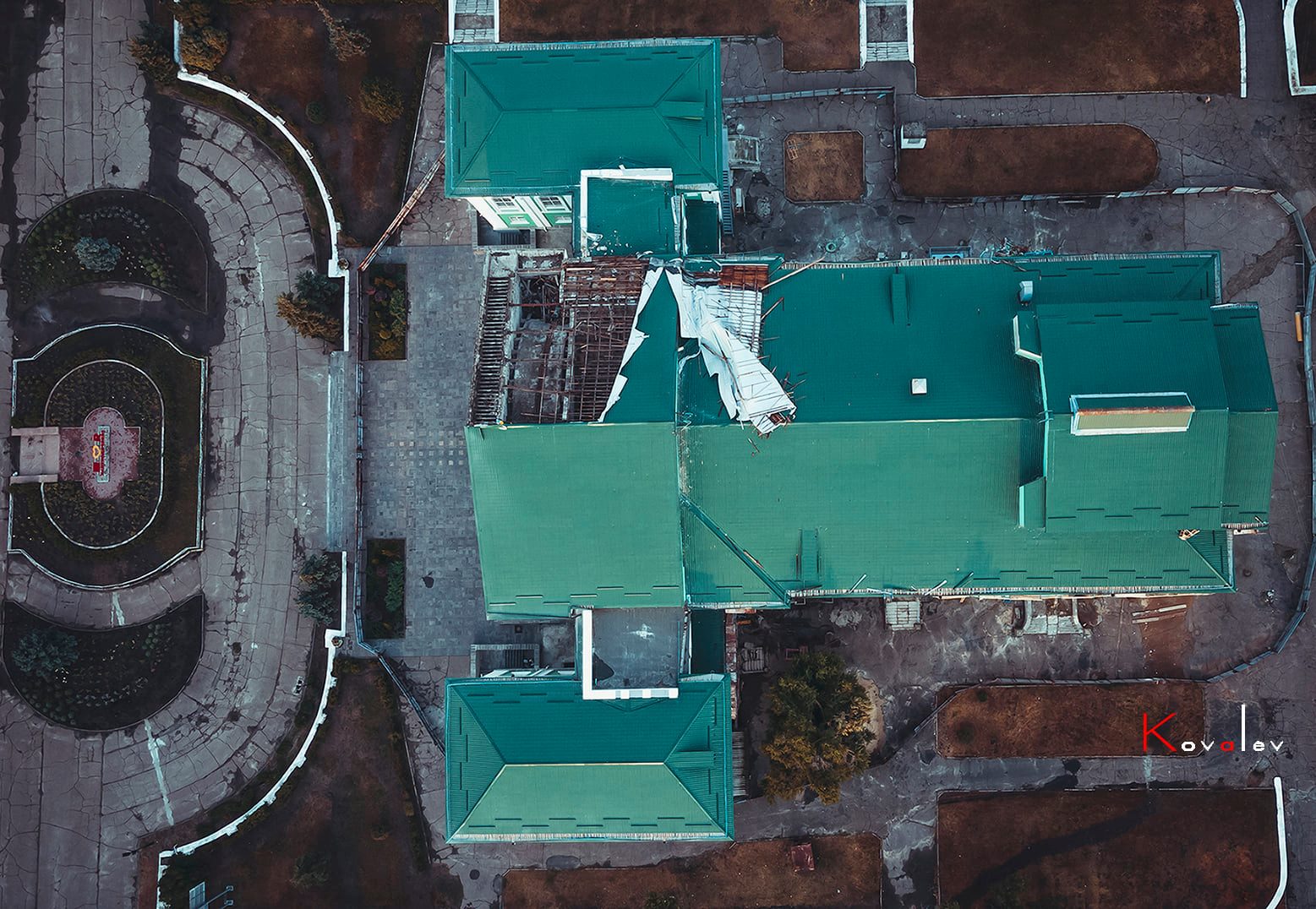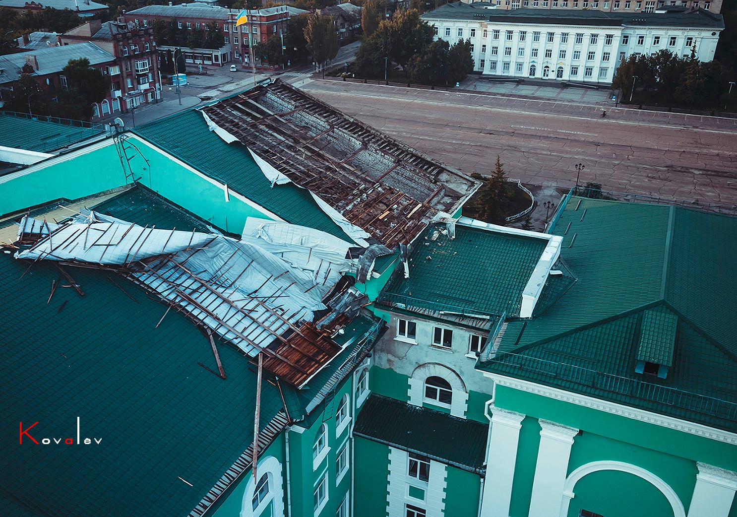 Как можно заметить на фото, ДК теперь остался фактически без крыши. Жители города полагают, что причина - не только непогода.