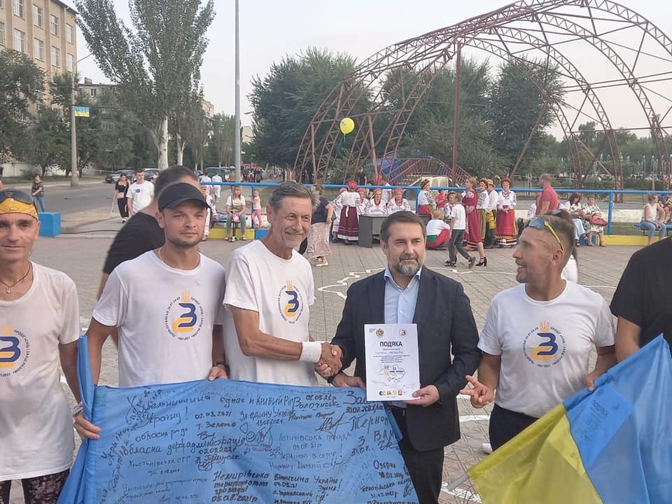 Сегодня в Северодонецке финишировали участники Всеукраинского сверхмарафонского пробега "Восток и Запад вместе", посвященного 30-й годовщине Независимости Украины.