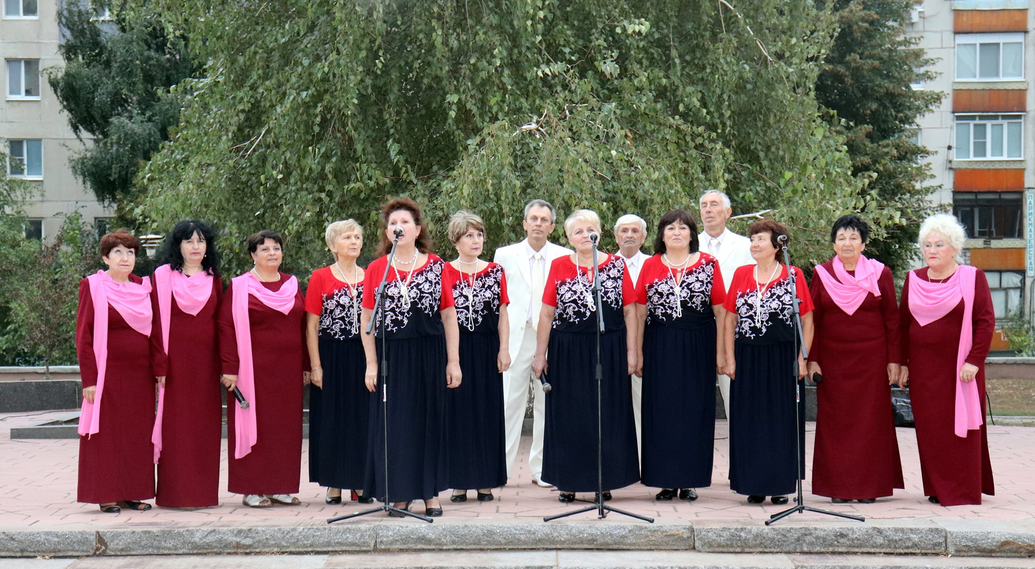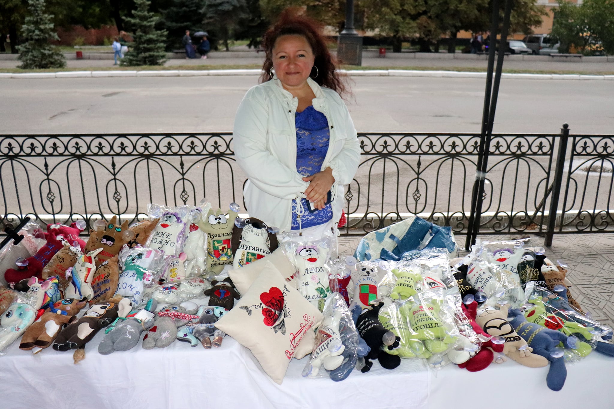 У мемориального комплекса «Танк» лисичан и гостей города поздравляли вокальными композициями коллективы художественной самодеятельности дворцов культуры, также проходила выставка работ художников «Город мастеров».