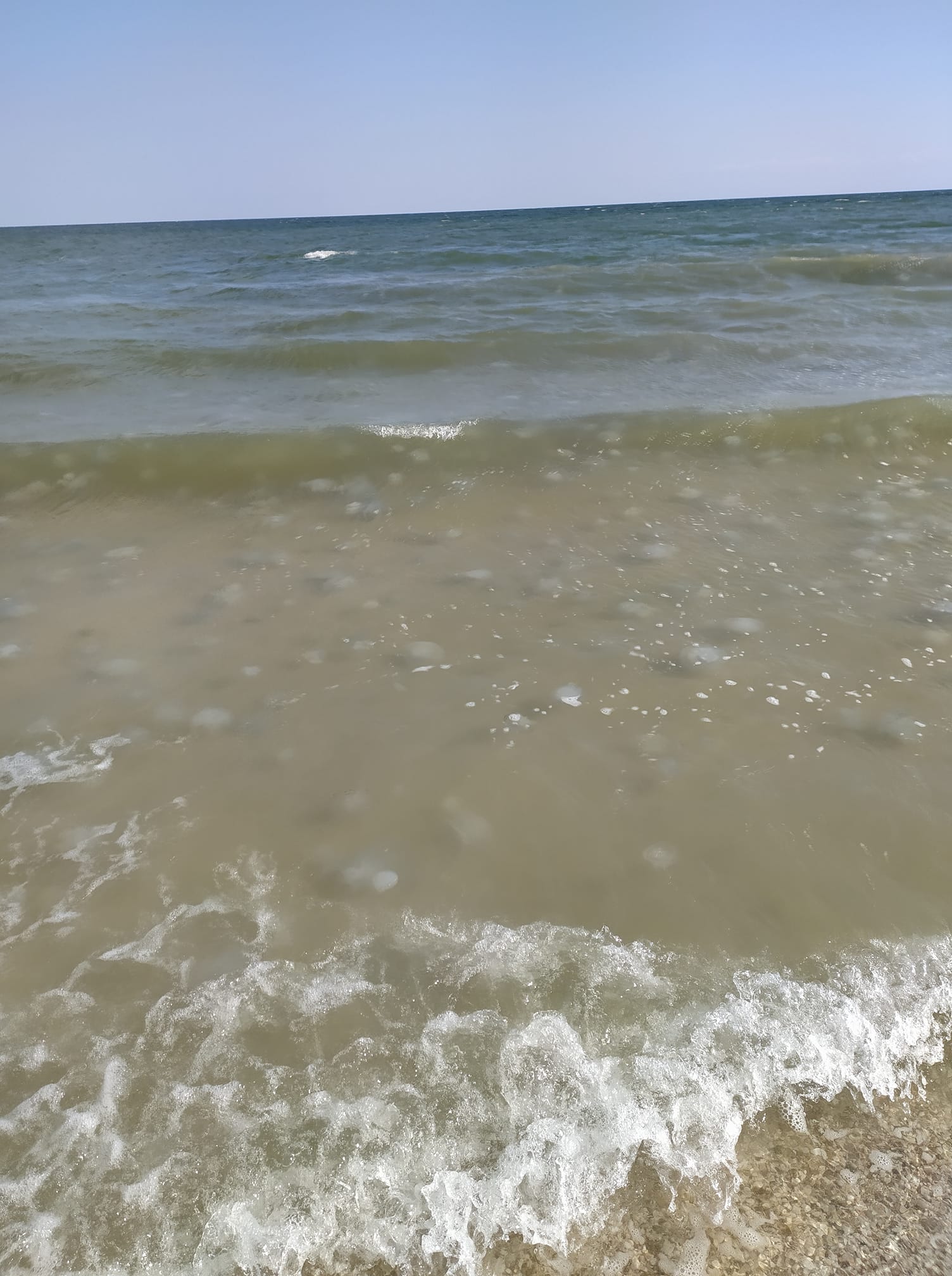 Очевидно, наличие или отсутствие медуз у берега зависит от направления ветра и течения, и они могут появляться то в одном, то в другом месте.