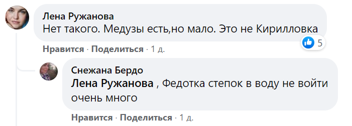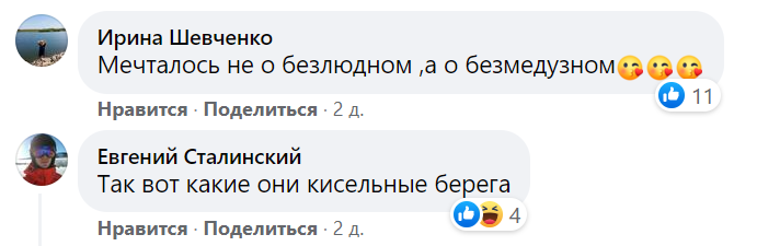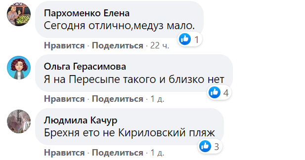 В комментариях разгорелись споры о том, действительно ли это кадры из Кирилловки. Часть пользователей в этом сомневается, поскольку, по их словам, в последние дни дует ветер и море штормит. Некоторые комментаторы утверждают, что медуз в море не видели, другие - наоборот, подтверждают, что их много.
