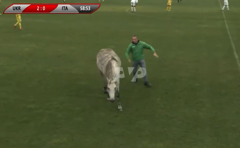 После перерыва, на 59-й минуте, на поле выбежала лошадь. В течение минуты представителям украинской сборной удалось выпроводить ее со стадиона.