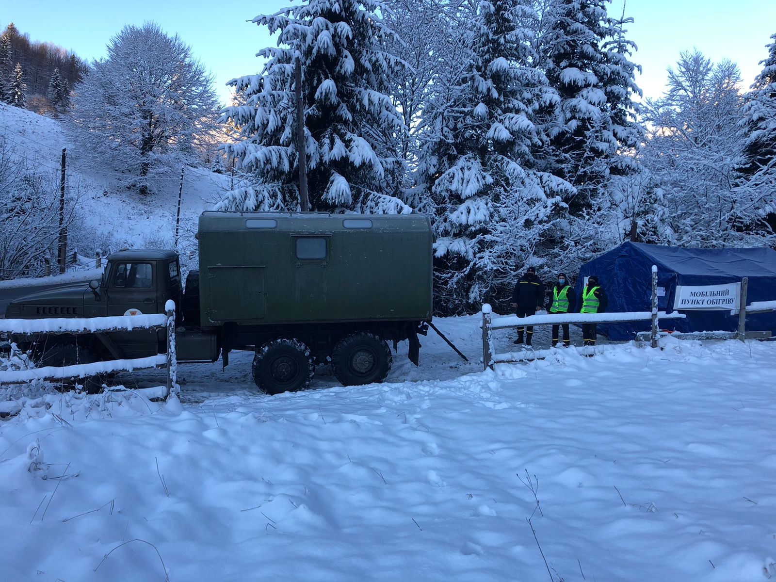 В общей сложности для оказания помощи населению в пунктах обогрева на карпатских перевалах привлечены 4 единицы техники и 12 человек личного состава.