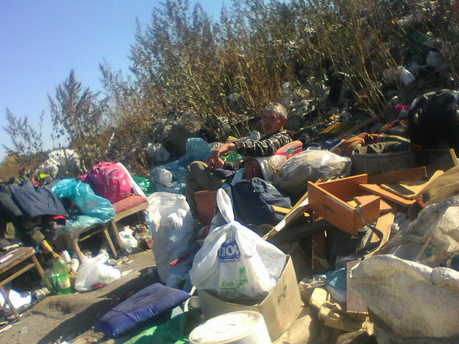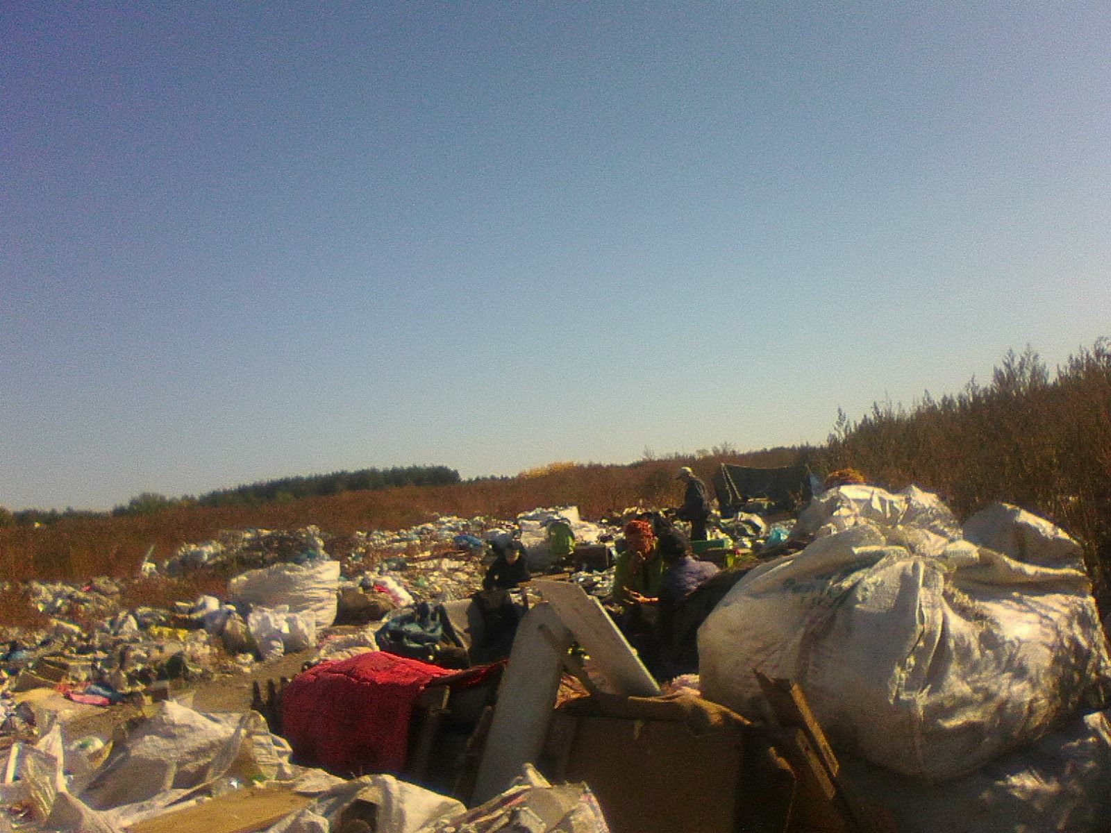 Все собранное добро наше можно сдать в цех сортировки, предприятие здесь недалеко, частное такое. Есть в городе приемные пункты макулатуры, металлолом принимают вообще, наверное в пяти точках. А здесь, пожалуйста, - все включено, как крутые отдыхающие говорят: и забрали у тебя собранное сами, и взвесили, и наличные тут же выплатили. Вот оно счастье бомжа - живи не хочу. Работают на полигоне до 20 человек. Работают в основном одиночки. Но был как в советские времена и семейный подряд: мама, папа и восьмиклассница дочка. Даже не знаю, ходила она еще в школу или на восьми классах все и закончилось. Но все трое были здесь всегда вместе. Собирали, обедали вместе, а потом шли на Силикатный район. Там у них был домишко хоть какое. Я когда-то заходил в гости, когда отца хоронили, все-таки вместе часто выпивали... Да, умирали они от тубика (туберкулеза). Года четыре работали. Потом мать умерла.. Дочь, когда одна осталась, перестала сюда ходить. Не знаю, куда она девалась... Может, работает где...