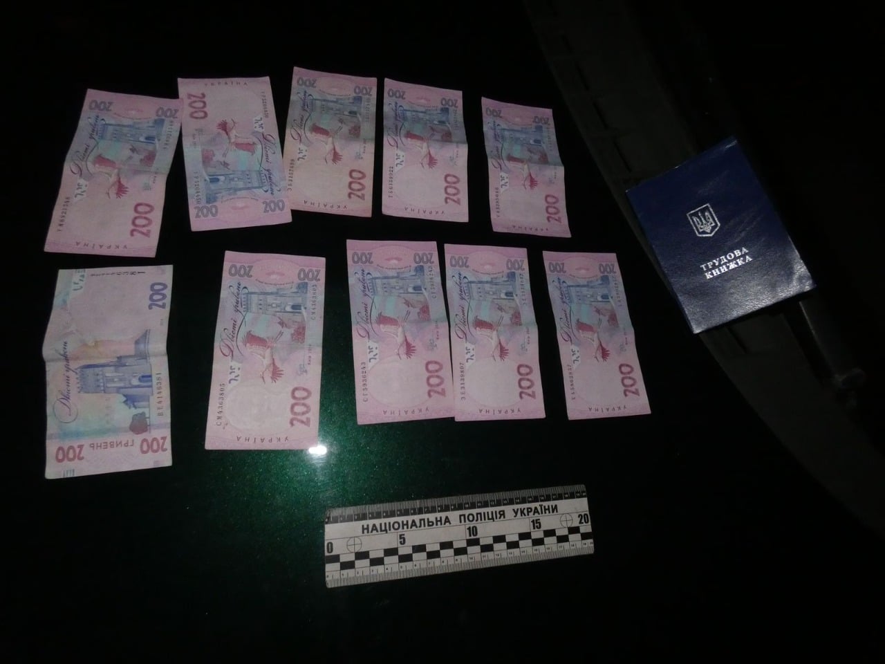 С места происшествия полицейскими изъяты денежные средства и трудовая книжка. Открыто уголовное производство по статье 368-3 УК Украины (Подкуп должностного лица юридического лица частного права независимо от организационно-правовой формы).