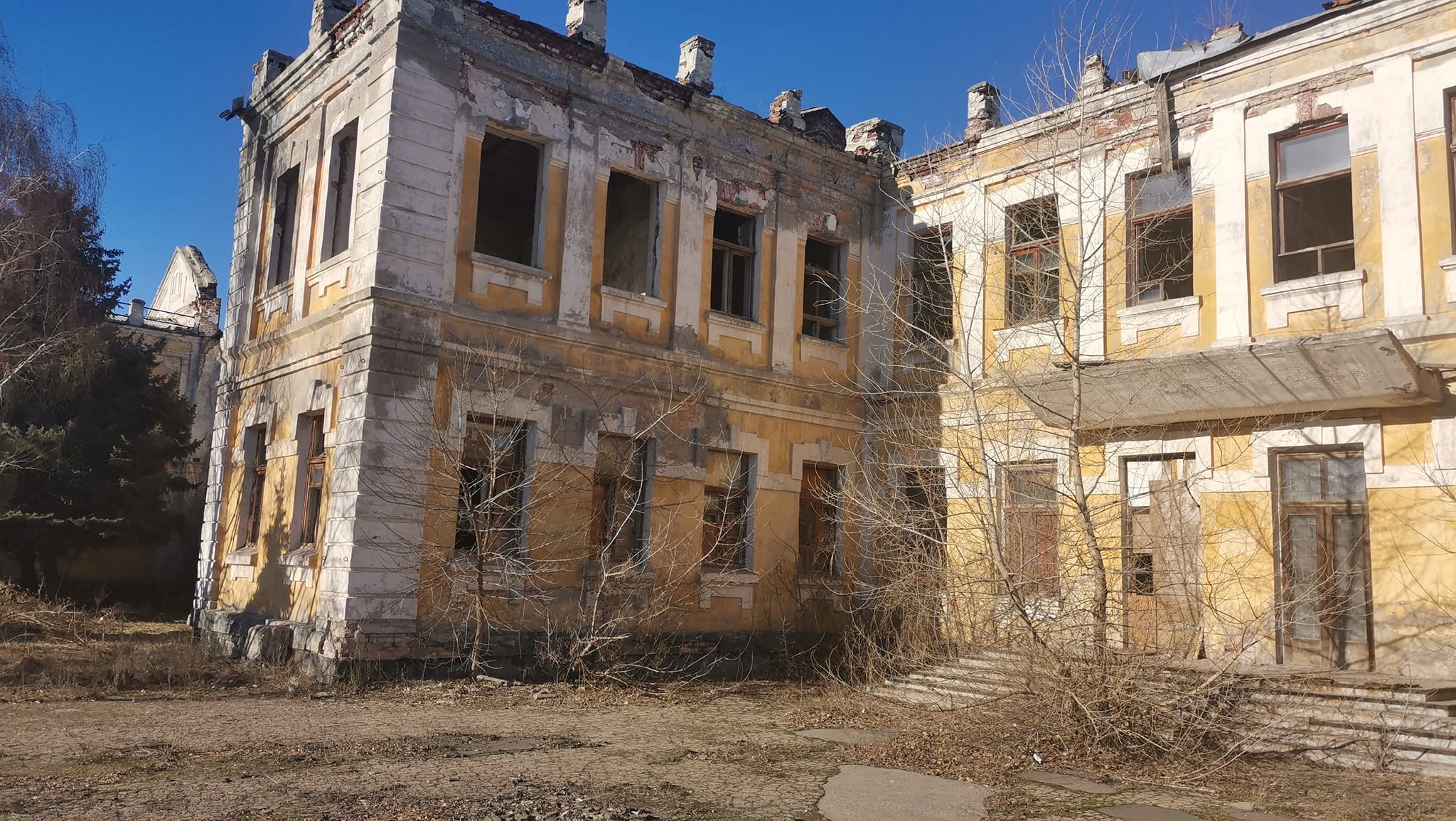 В печальном состоянии также бывшее здание одного из коммунальных предприятий города на ул. Сосюры; то, что раньше, по всей видимости, было спортзалом; бельгийская больница Сольве, о восстановлении которой вроде бы и говорили местные власти, но воз и ныне там.