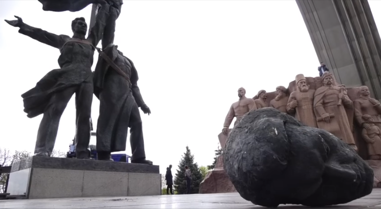 В столице сегодня под вечер не без труда демонтировали советскую скульптуру двух рабочих (символ воссоединения Украины и России).