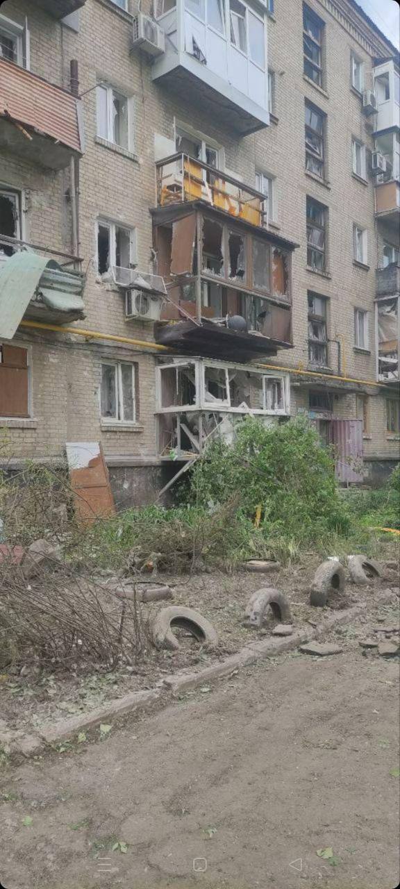 Российские оккупационные войска обстреляли центр Лисичанска. Пострадали жилые дома, гаражные сооружения. Удар был также нанесен по пункту выдачи гуманитарной помощи.