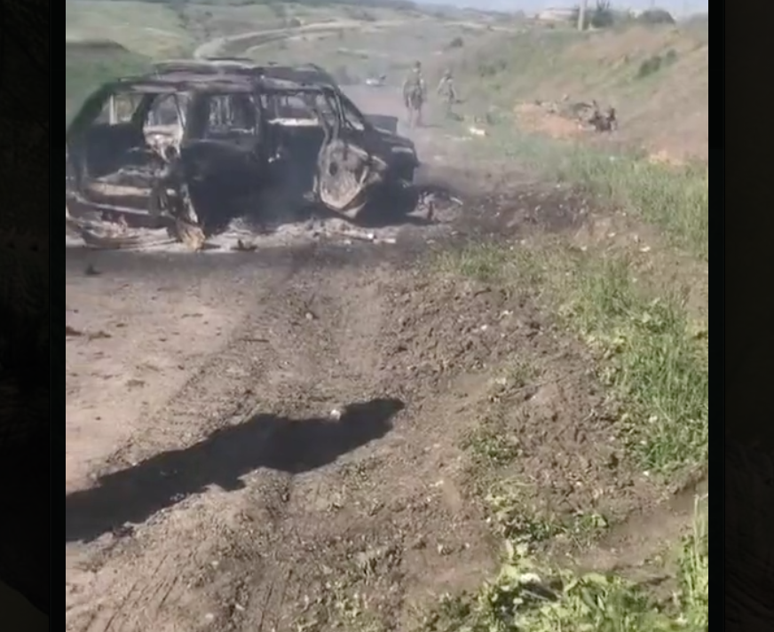 На видео показано, что трасса "Лисичанск - Бахмут" сильно пострадала от обстрелов, на обочинах разбросаны разбитые авто. Она постоянно простреливается врагом.