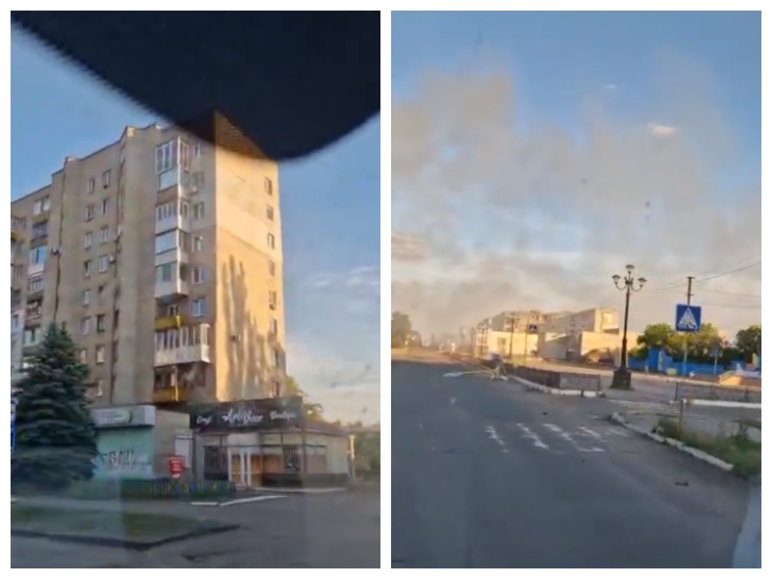 Как видно, над центром Лисичанска поднимается дым. В городе возникли пожары в результате обстрелов. В частности, достоверно известно, что горел центральный рынок.