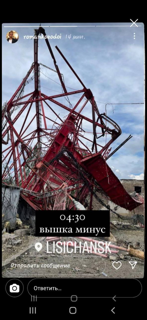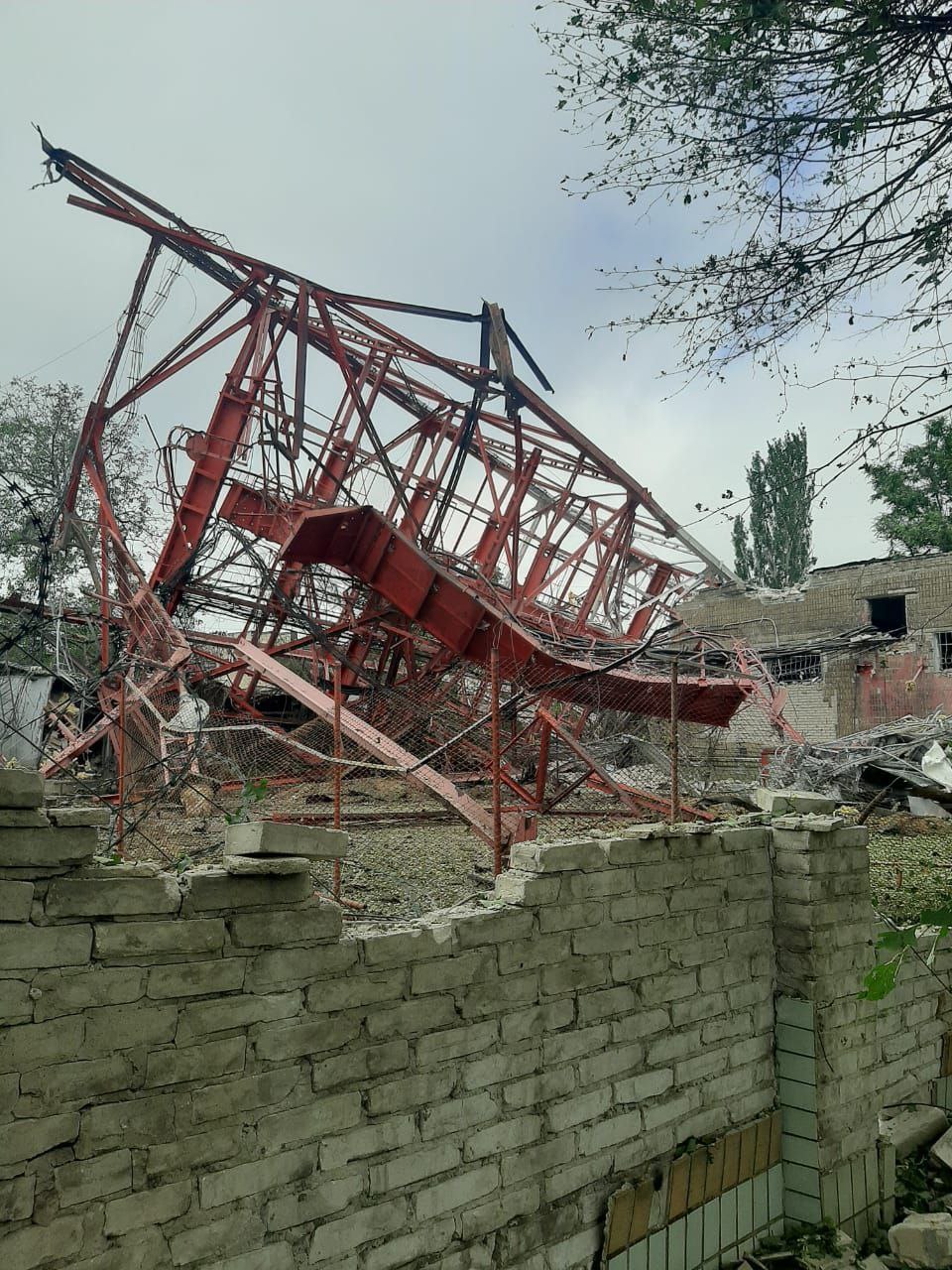 В Лисичанске, который находится сейчас под мощными обстрелами, больше нет телевышки - она превратилась в груду металлолома, которая валяется на земле.