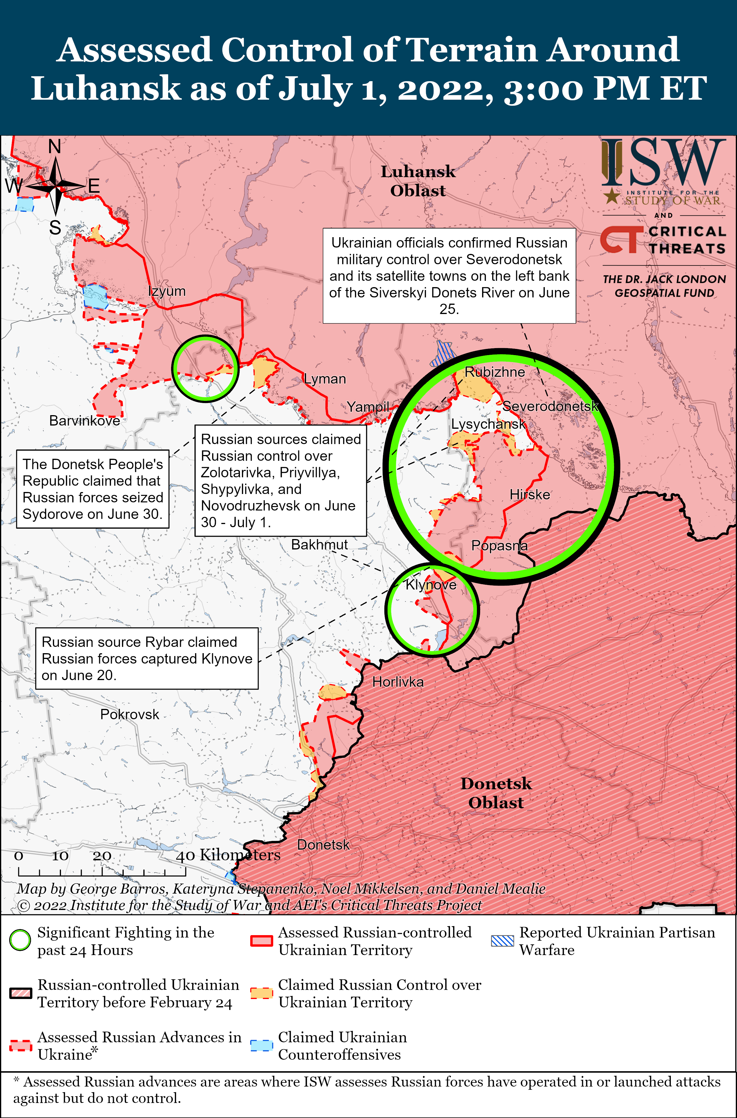 Об этом сообщает Институт по изучению войны (ISW) в сводке по итогам 1 июля, передает Час Пик.
