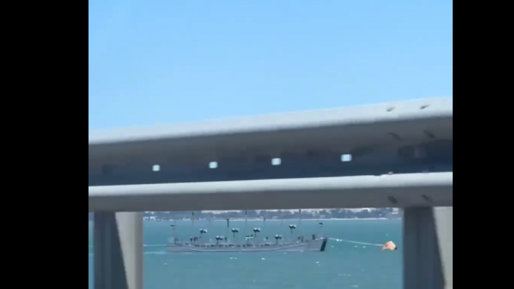 Российские войска усиливают противоракетную оборону Крымского моста. Противоракетную оборону усилили баржами с уголковыми отражателями в районе арок.