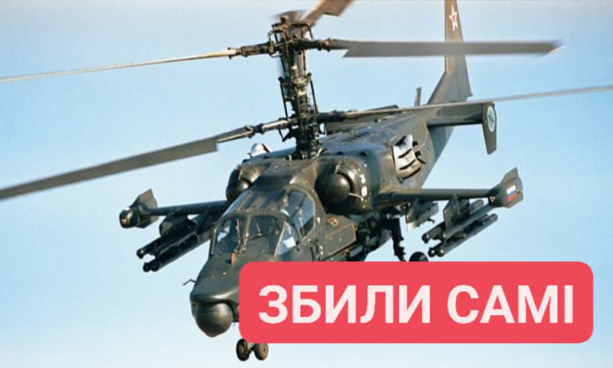 "Жест доброй воли" от оккупантов. За прошедшие сутки три российских Ка-52 на Херсонщине намеревались атаковать наши подразделения, но... нанесли удар по своим. Возвращаясь, вертолеты оккупантов попали под "дружественный" огонь испуганных расчетов противовоздушной обороны российских войск. Российская ПВО никогда не отличалась точностью, поэтому захватчики сбили всего один свой ударный Ка-52 из трех. А жаль...", - говорится в сообщении.