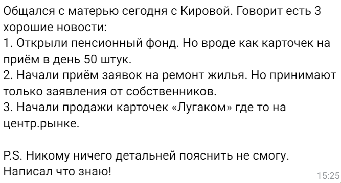 В региональных чатах пишут, что на центральном рынке Лисичанска начали продавать сим-карты "Лугакома". Особенность этого оператора в том, что с него можно звонить только внутри сети или в Россию.