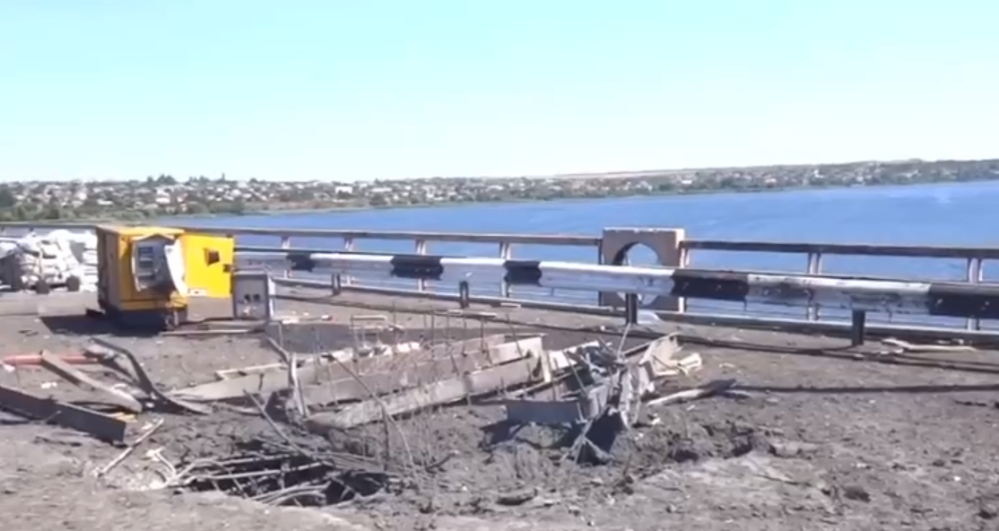Как утверждают оккупанты, на мосту появилось 4 воронки от попадания ракет. Повреждена строительная техника, которой россияне пытались отремонтировать мост после предыдущих ударов.