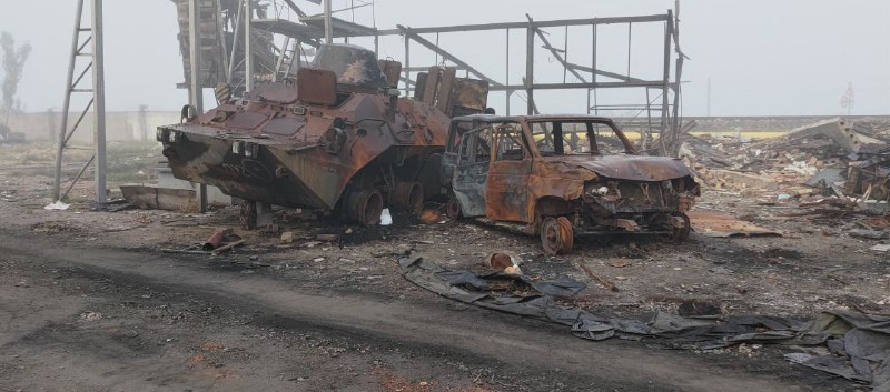 На видео видно, что от вражеской базы ничего не осталось. Вся территория засыпана камнями и разбитой техникой.